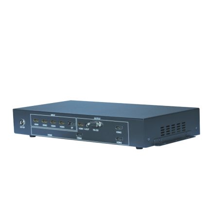 Any splicing mode customization with 16 splicing such as 1x2, 1x3, 1x4, 1x5, 1x6, 2x1, 2x2, 2x3, 3x1, 3x2, 4x1, 5x1, 6x1, etc. a super resolution display of 11520x3240 through three 6 outputs groups or two 9 outputs groups. with Image 180 degree rotation function,edge shielding function,Infrared remote control, chassis buttons, serial port control,Cascading to achieve super-resolution stitching